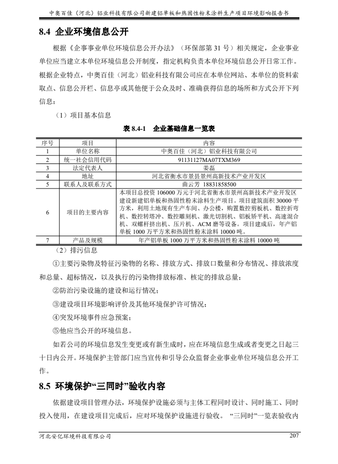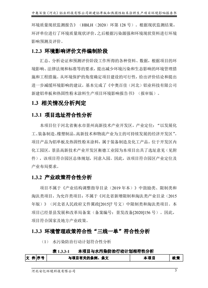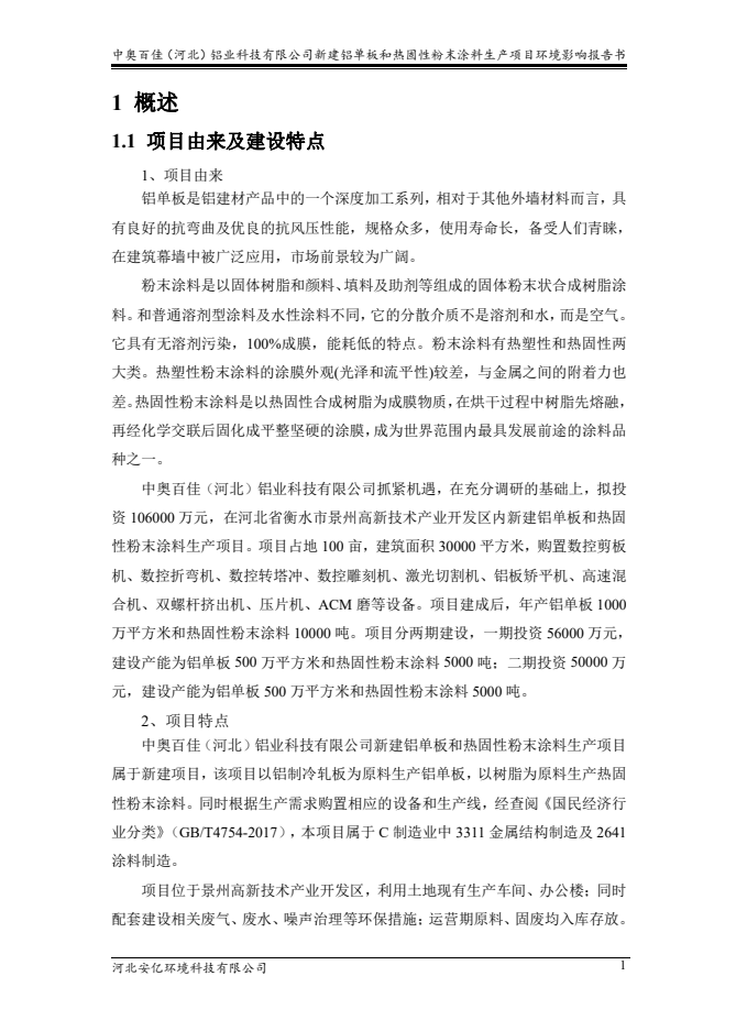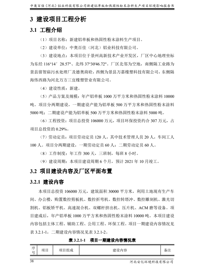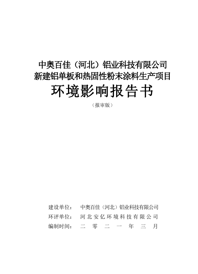 項目名稱 | 中奧百佳(河北)鋁業(yè)科技有限公司新建鋁單板和熱固性粉末涂料項目 | |