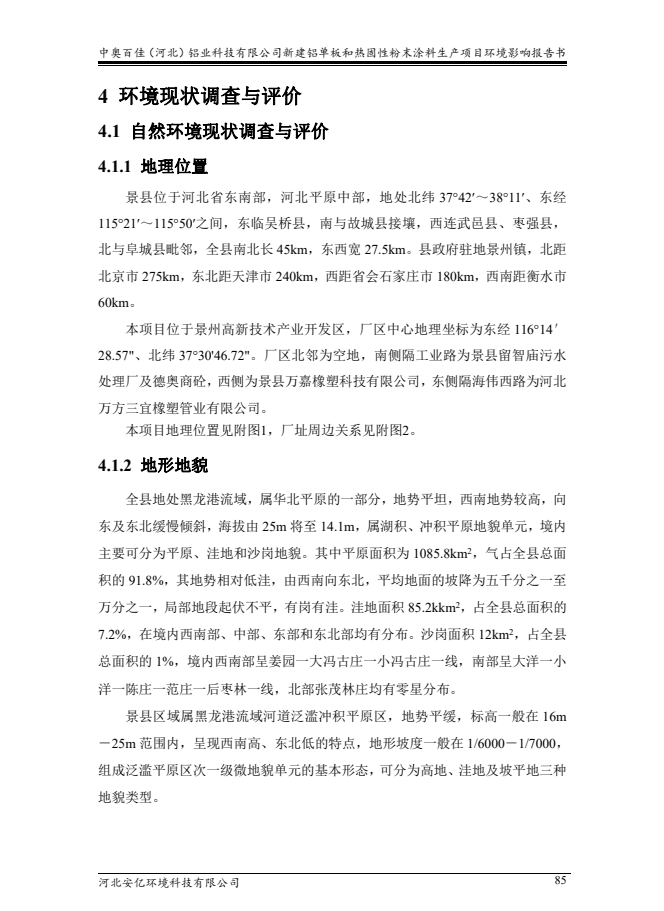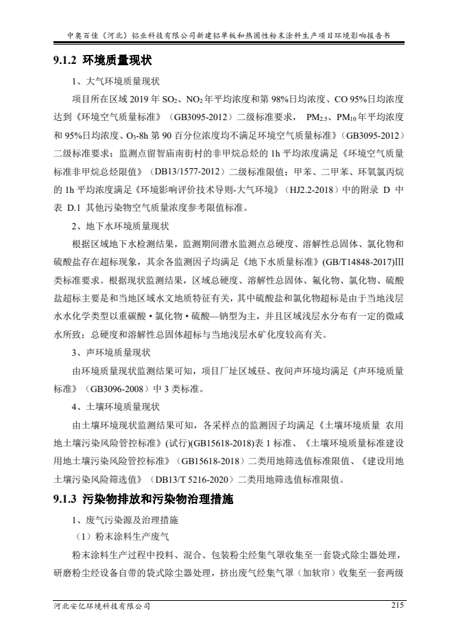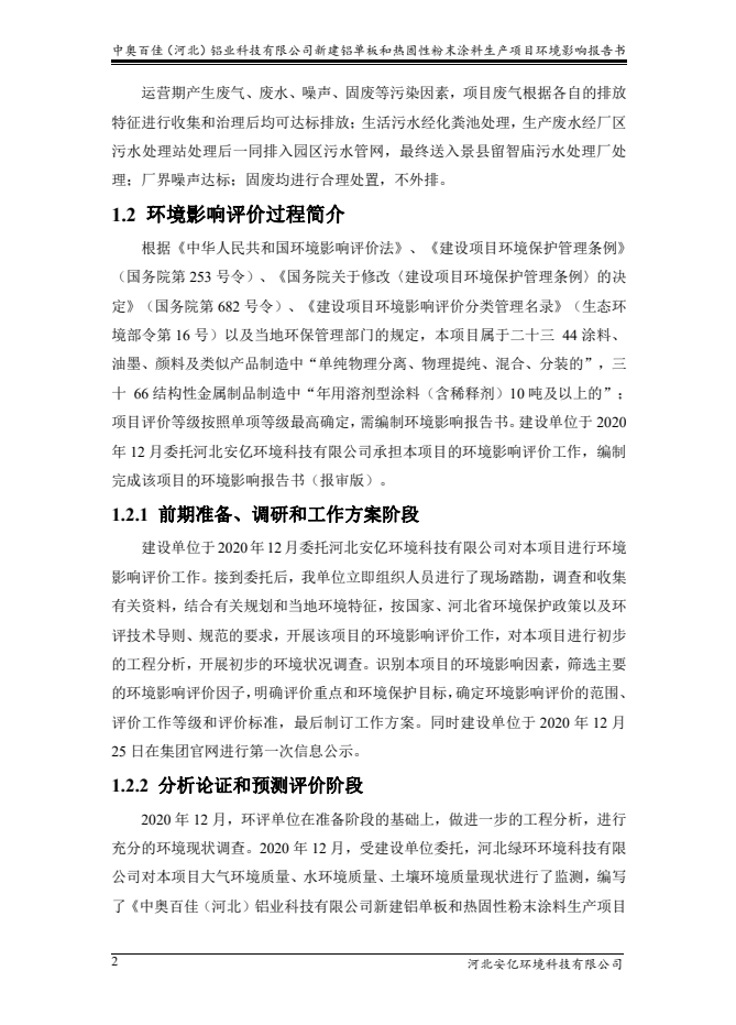 中奧百佳(河北)鋁業(yè)科技有限公司《新建鋁單板和熱固性粉末涂料項目》**次公示