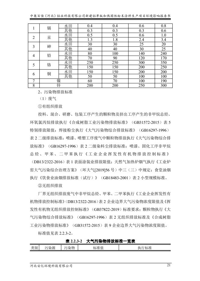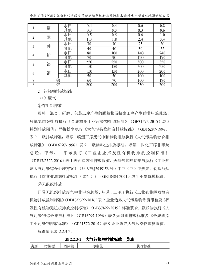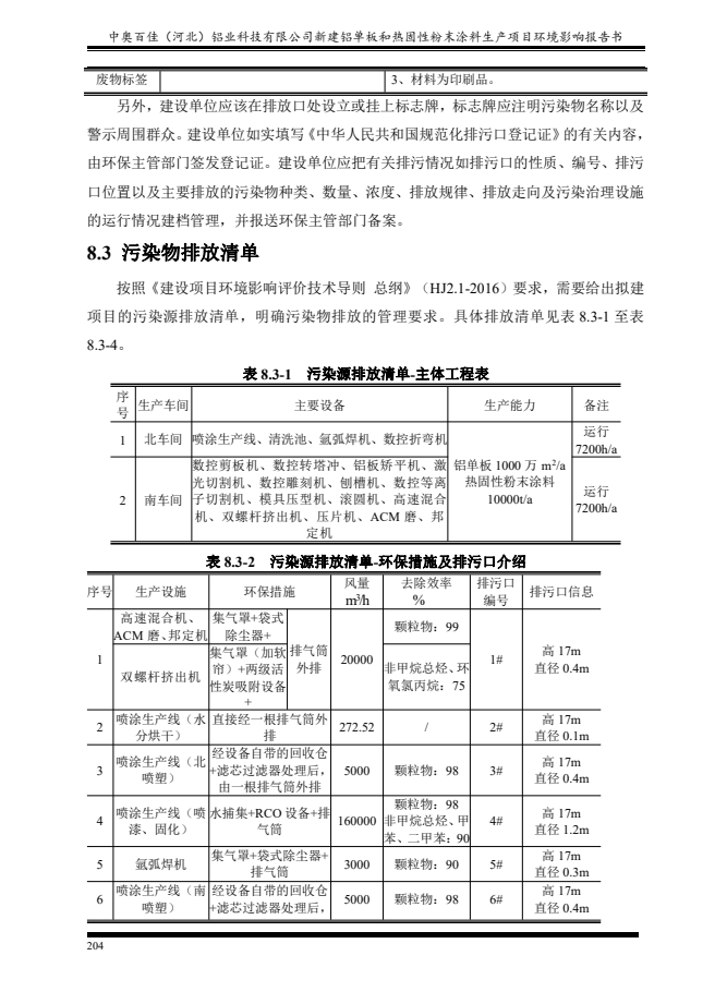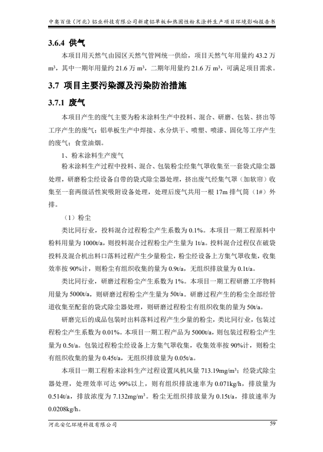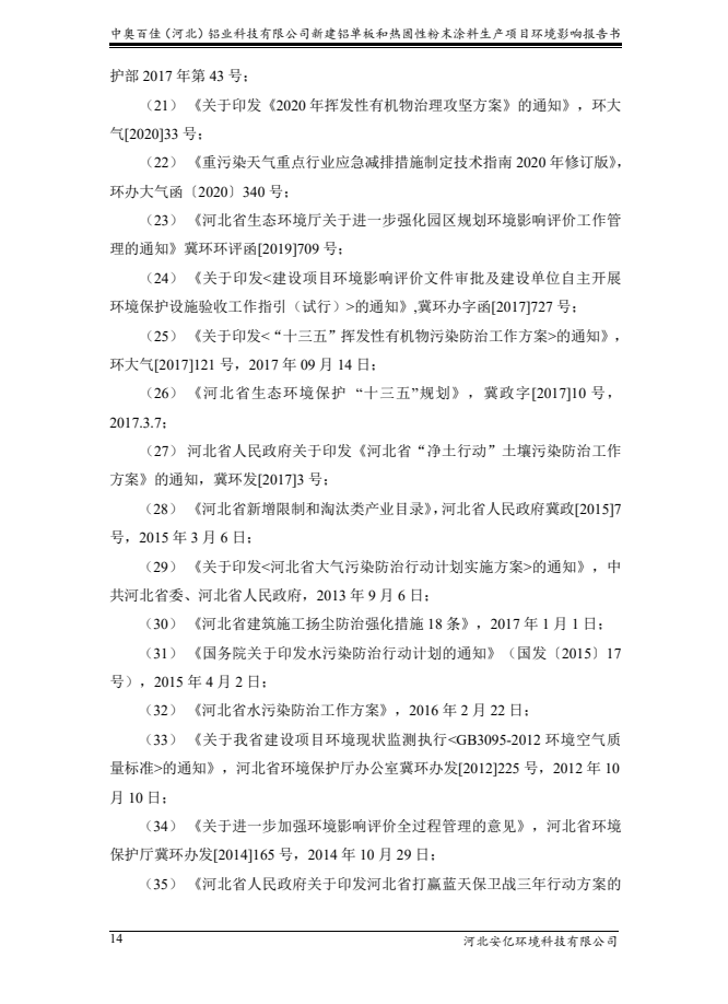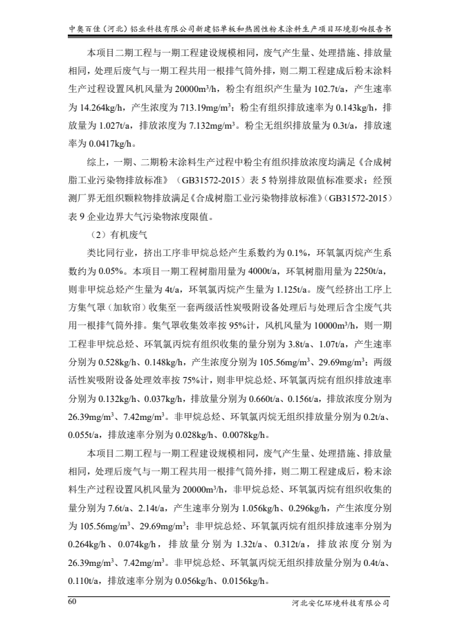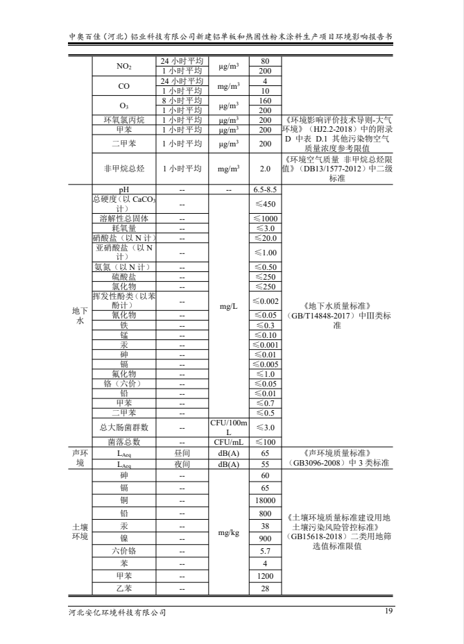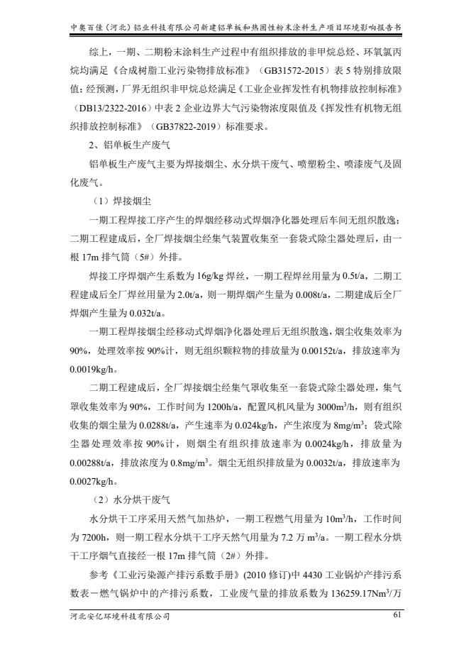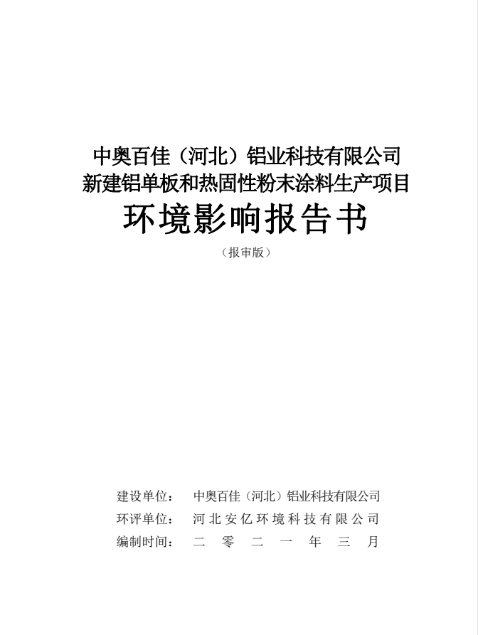 《中奧百佳(河北)鋁業(yè)科技有限公司新建鋁單板和熱固性粉末涂料項目》征求意見稿公示