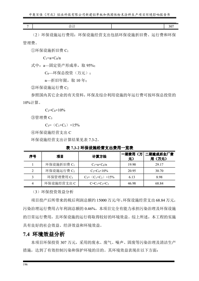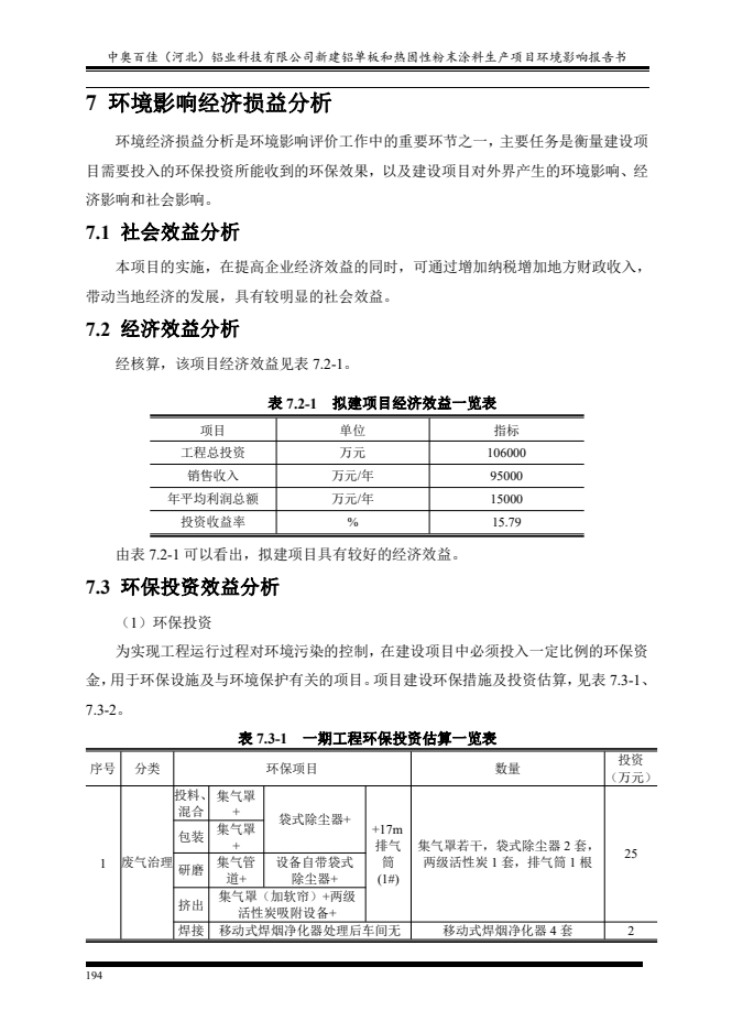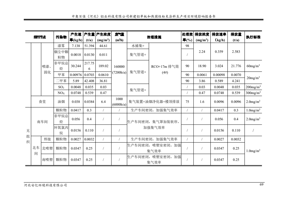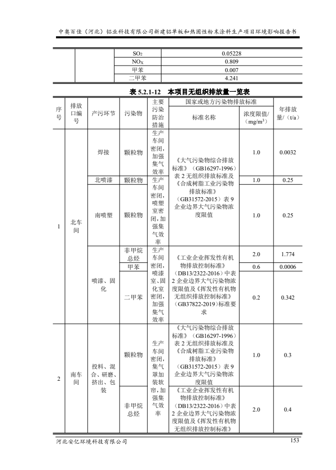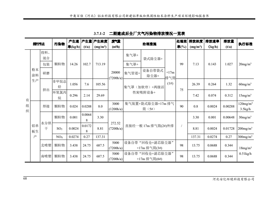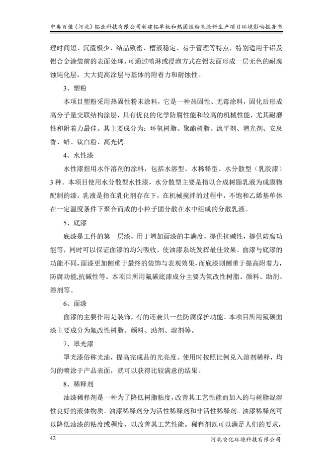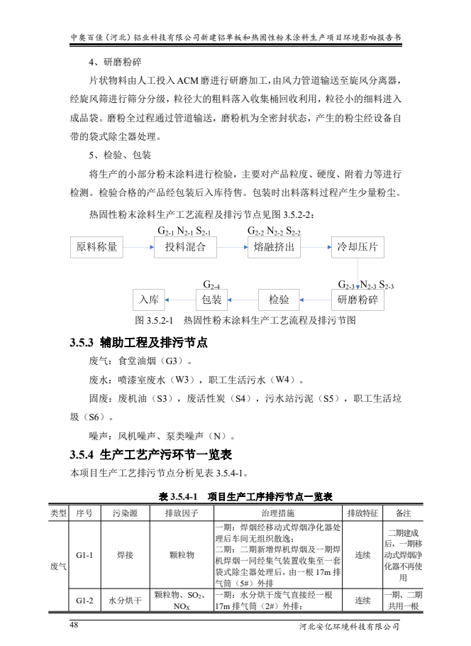 項目名稱:新建鋁單板和熱固性粉末涂料項目;