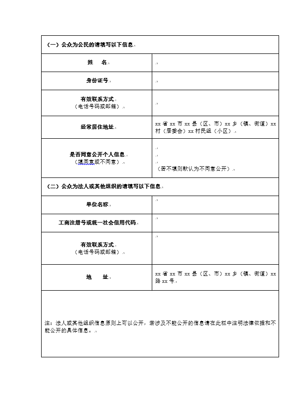 (一)公眾為公民的請?zhí)顚懸韵滦畔?/span> | ||